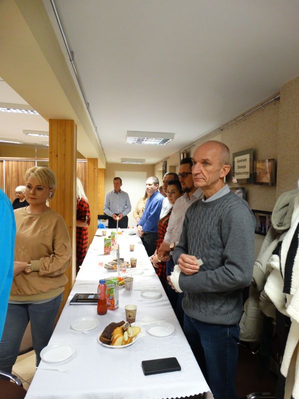 Spotkanie opłatkowe w Ostrowskim Stowarzyszeniu Rodzin Abstynenckich "Rodzina", na którym gościli ks. Mateusz Rakusiewicz, Joanna Rudzka-Wiśniewska oraz przedstawiciele innych stowarzyszeń antyalkoholowych z regionu Mazowsza.