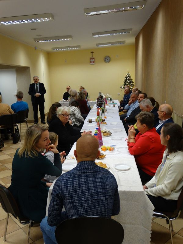 Spotkanie opłatkowe w Ostrowskim Stowarzyszeniu Rodzin Abstynenckich "Rodzina", na którym gościli ks. Mateusz Rakusiewicz, Joanna Rudzka-Wiśniewska oraz przedstawiciele innych stowarzyszeń antyalkoholowych z regionu Mazowsza.
