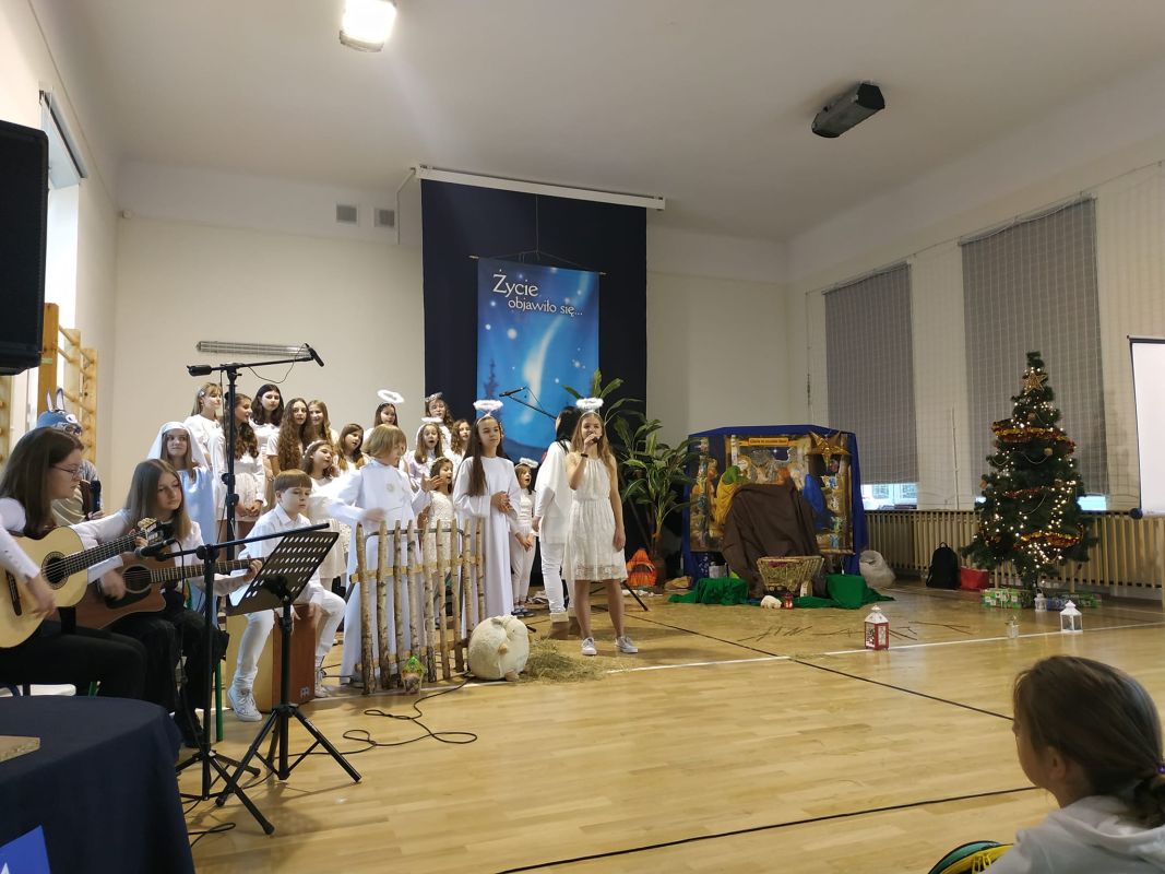 Jasełka w wykonaniu uczniów - głównie klas czwartych - pod kierunkiem ks. Wojciecha Kuraka.