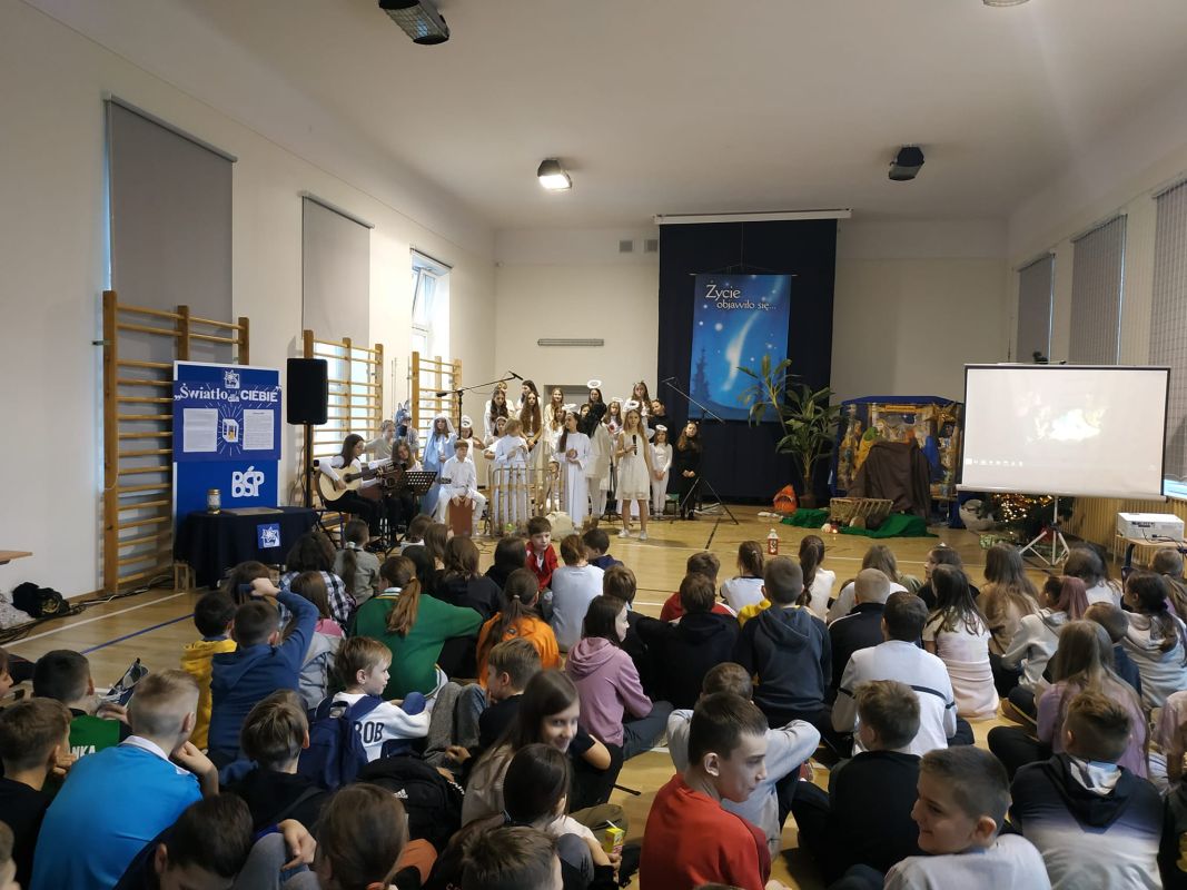 Jasełka w wykonaniu uczniów - głównie klas czwartych - pod kierunkiem ks. Wojciecha Kuraka.