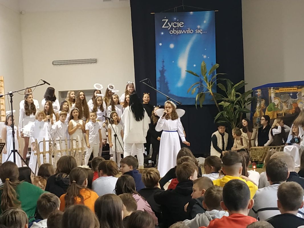 Jasełka w wykonaniu uczniów - głównie klas czwartych - pod kierunkiem ks. Wojciecha Kuraka.