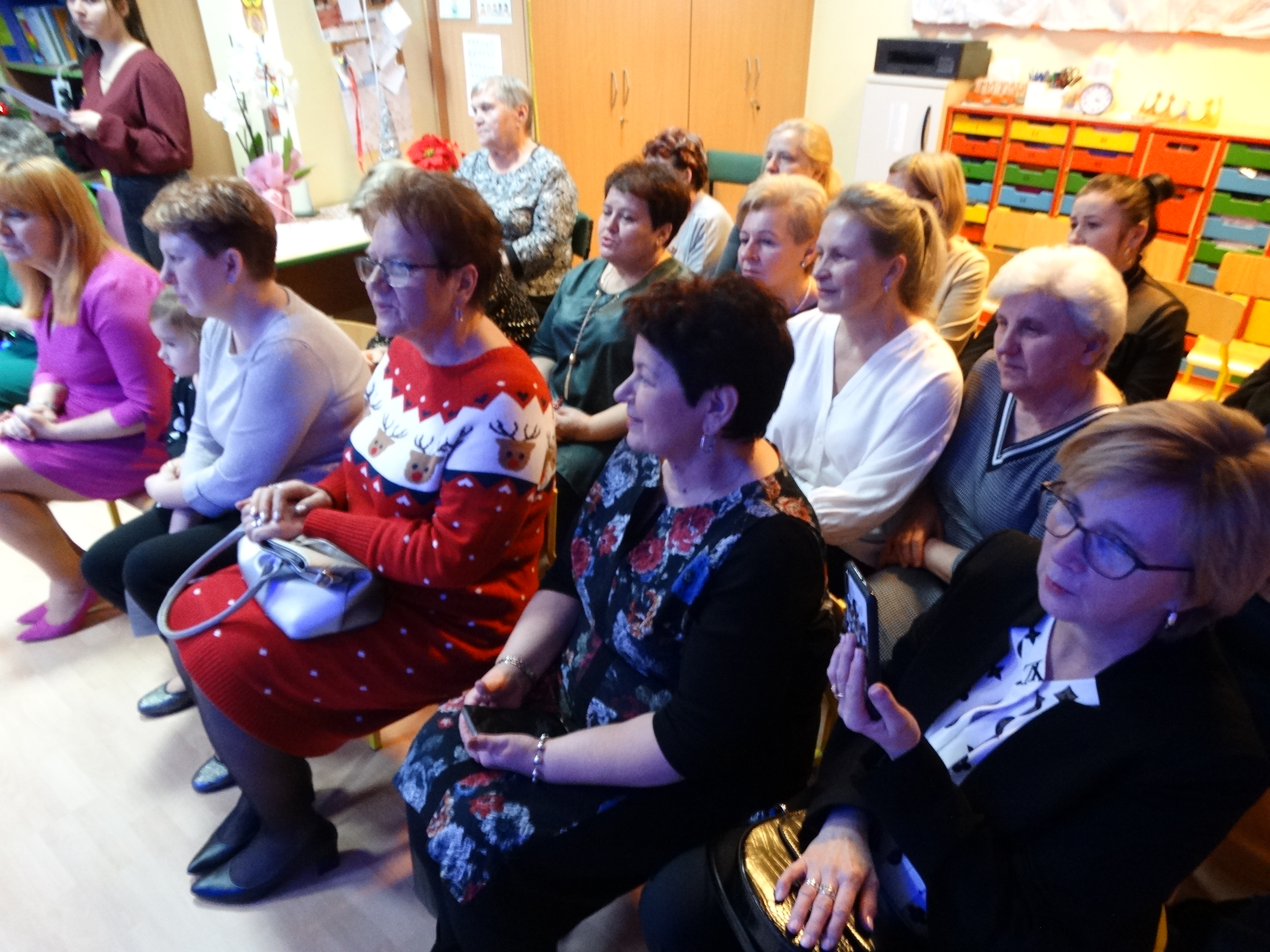 Spotkanie noworoczne w Miejskim Przedszkolu nr 1 - obecnych pracowników, emerytowanych pracowników oraz zaproszonych gości.
