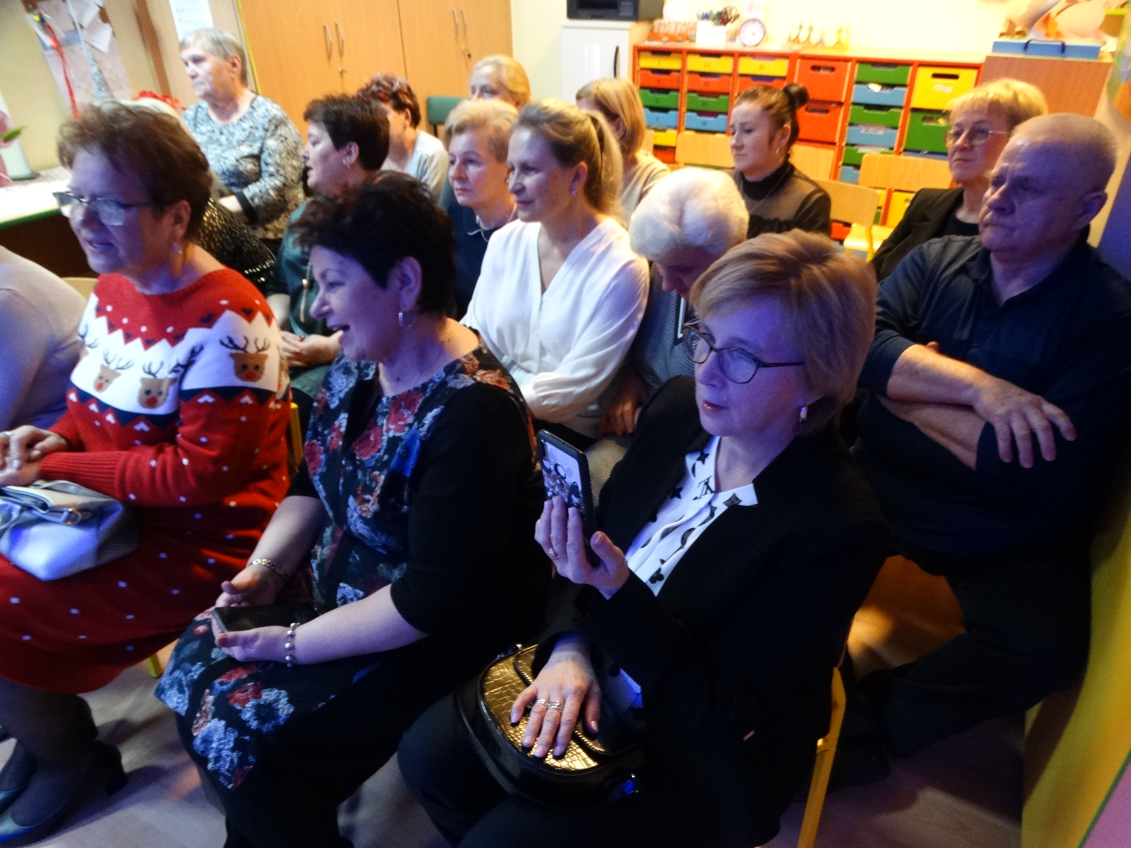 Spotkanie noworoczne w Miejskim Przedszkolu nr 1 - obecnych pracowników, emerytowanych pracowników oraz zaproszonych gości.