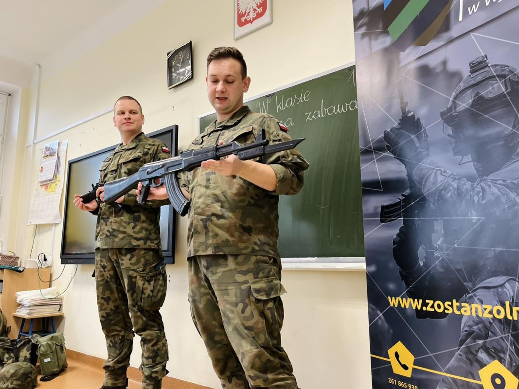 Wizyta żołnierzy w szkole, wzbudziła wielkie zaciekawienie dzieci.