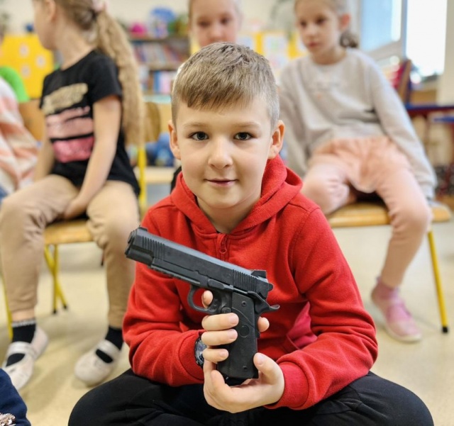 Wizyta żołnierzy w szkole, wzbudziła wielkie zaciekawienie dzieci.