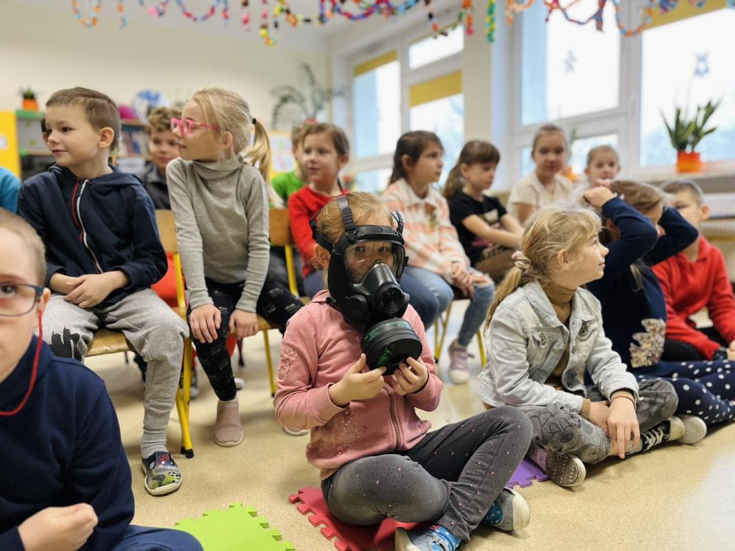 Wizyta żołnierzy w szkole, wzbudziła wielkie zaciekawienie dzieci.
