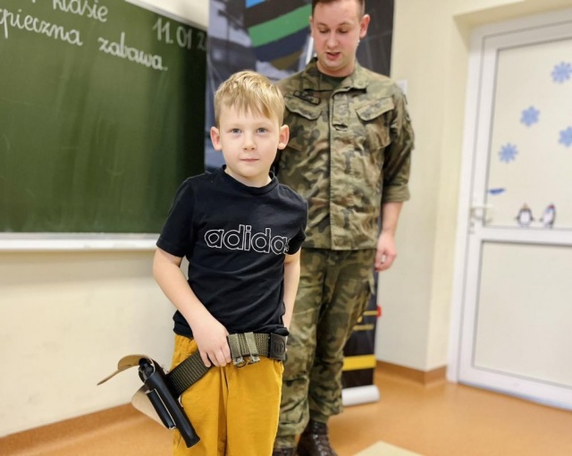 Wizyta żołnierzy w szkole, wzbudziła wielkie zaciekawienie dzieci.