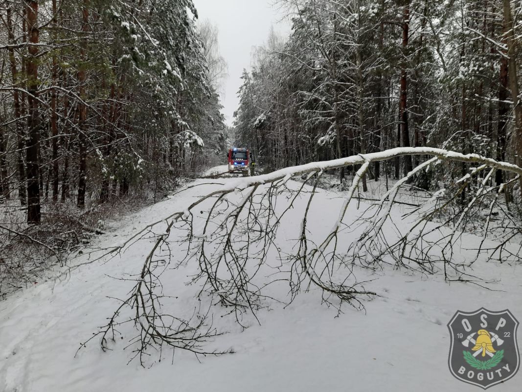 Strażacy niwelowali skutki ciężkiego, mokrego śniegu w gminie Boguty-Pianki.