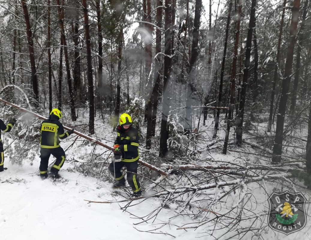 Strażacy niwelowali skutki ciężkiego, mokrego śniegu w gminie Boguty-Pianki.
