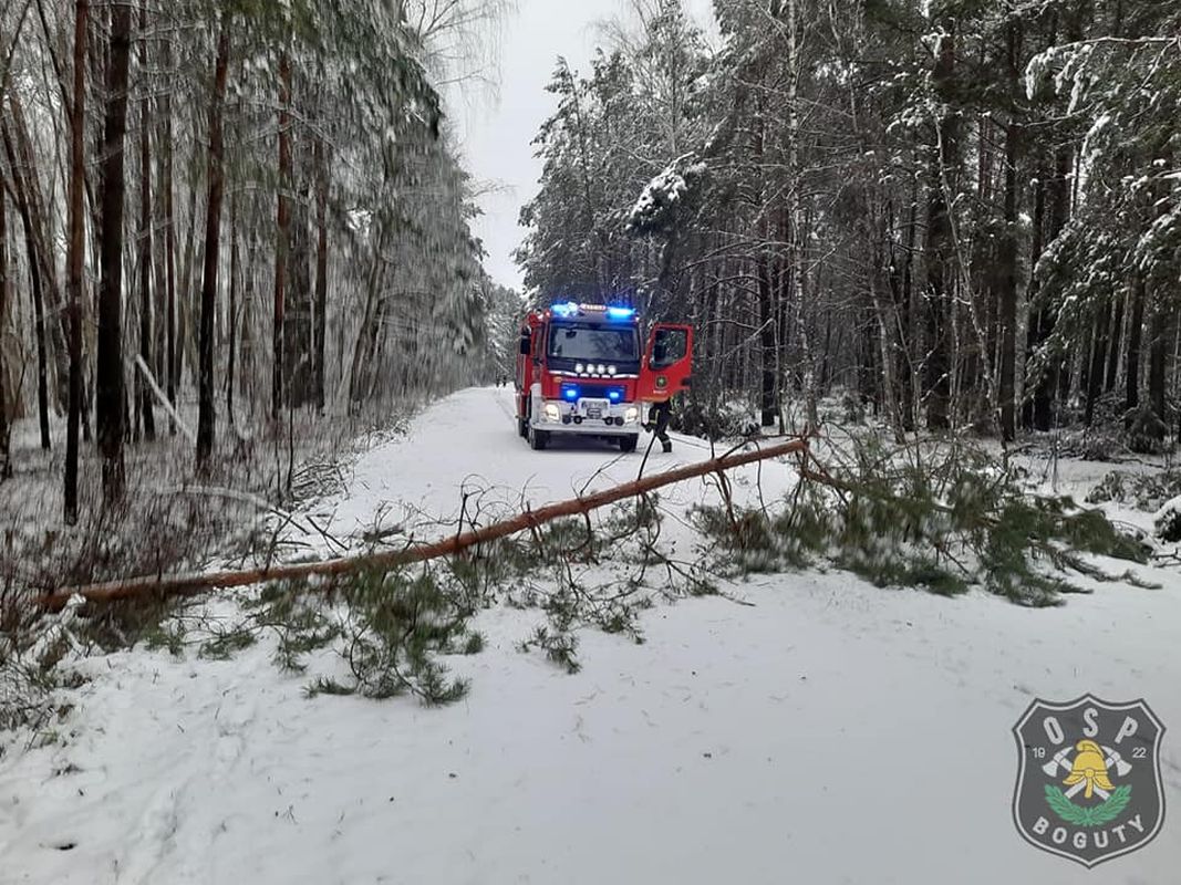 Strażacy niwelowali skutki ciężkiego, mokrego śniegu w gminie Boguty-Pianki.