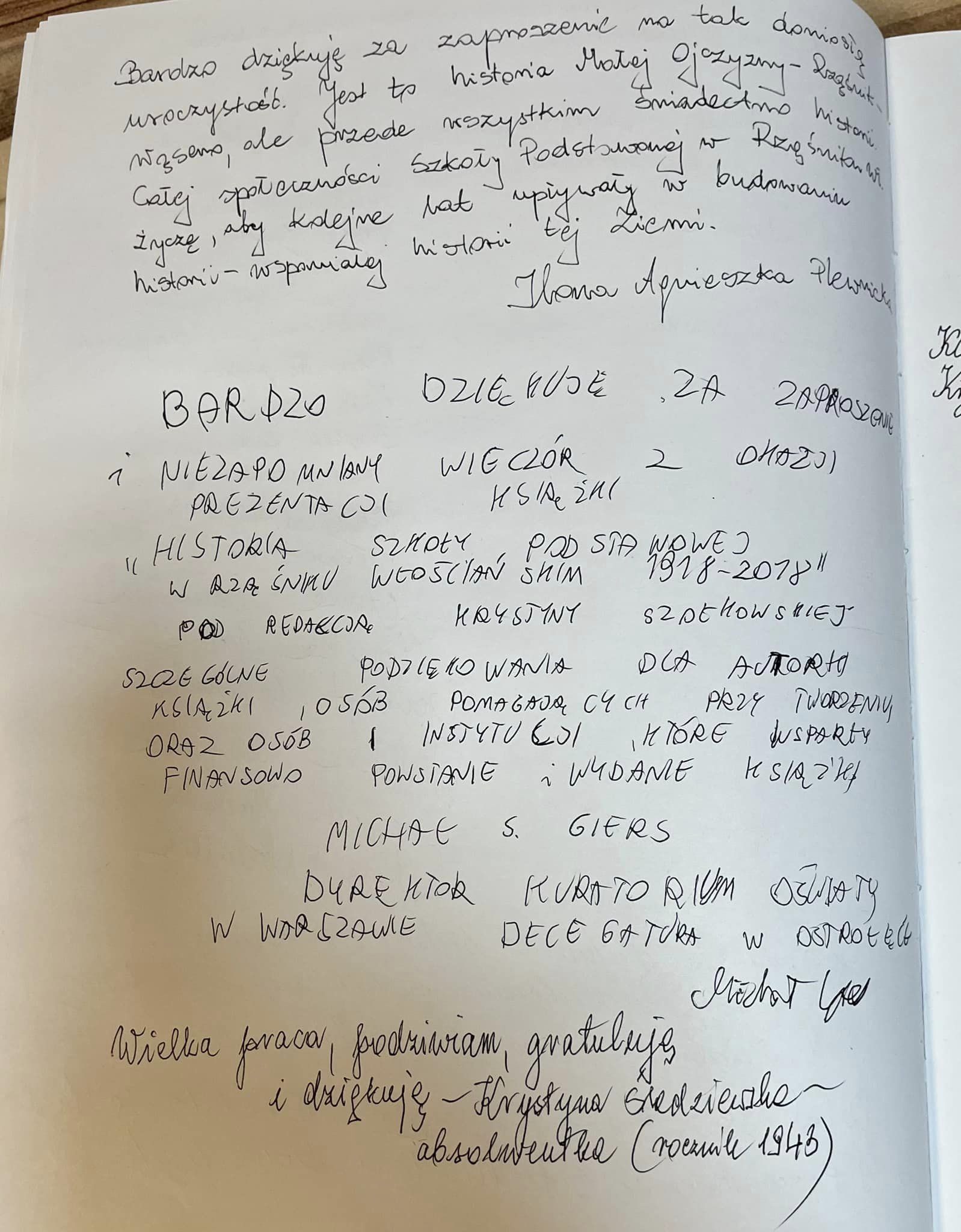Autorskie spotkanie z Krystyną Szołkowską, redaktorką książki "Historia Szkoły Podstawowej w Rząśniku Włościańskim w latach 1918-2018".