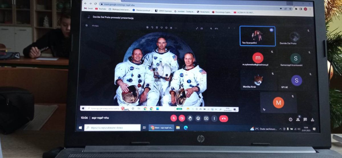 Internetowe spotkanie uczniów ostrowskich szkół podstawowych z wykładowcami z włoskiego obserwatorium astronomicznego w Brembate di Sopra.
