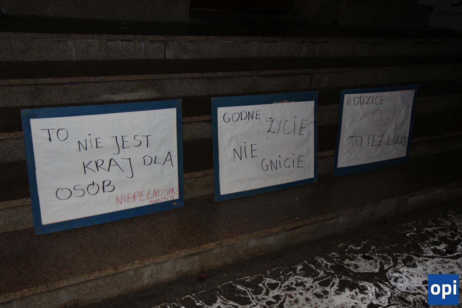 Pod budynkiem Urzędu Miasta Ostrów Mazowiecka zorganizowano protest osób z niepełnosprawnościami i ich opiekunów.