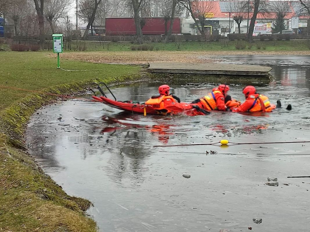 JRG PSP w Ostrowi Mazowieckiej przeprowadziła pokazy z ratownictwa lodowego