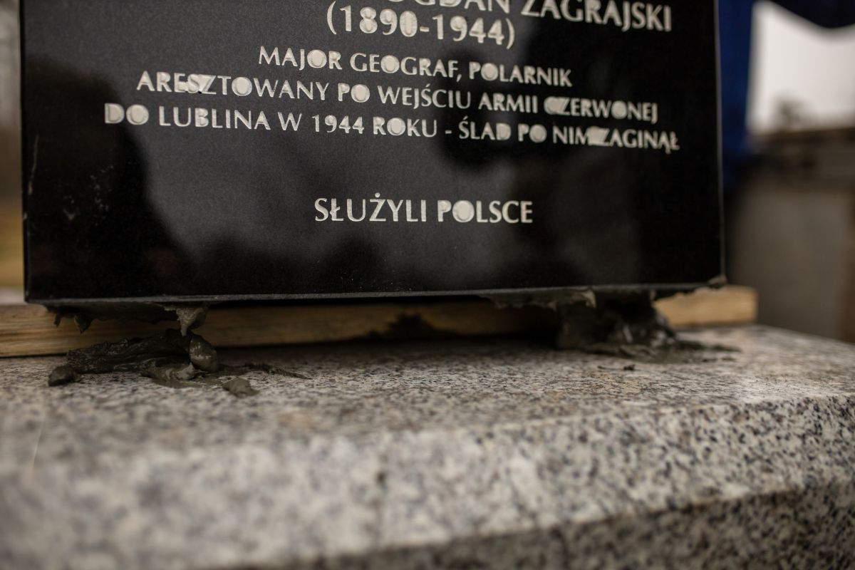 Reportaż zdjęciowy z montażu pomnika oraz uroczystości jego odsłonięcia podczas Święta Geografii Wojskowej