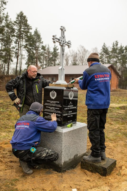 Reportaż zdjęciowy z montażu pomnika oraz uroczystości jego odsłonięcia podczas Święta Geografii Wojskowej