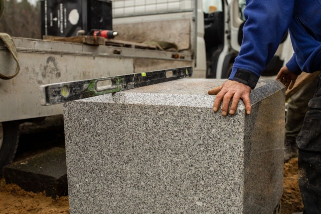 Reportaż zdjęciowy z montażu pomnika oraz uroczystości jego odsłonięcia podczas Święta Geografii Wojskowej