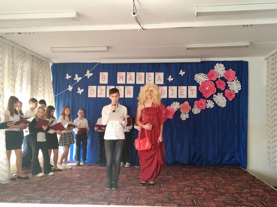 Samorząd Uczniowski przygotował niespodziankę. Był to pełen humoru występ męskiej części szkolnej społeczności.