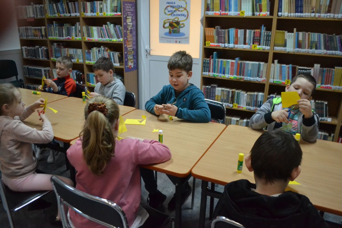 Lekcja biblioteczna dla uczniów i spotkanie z podopiecznymi Centrum Opiekuńczo-Mieszkalnego w Zarębach Kościelnych.