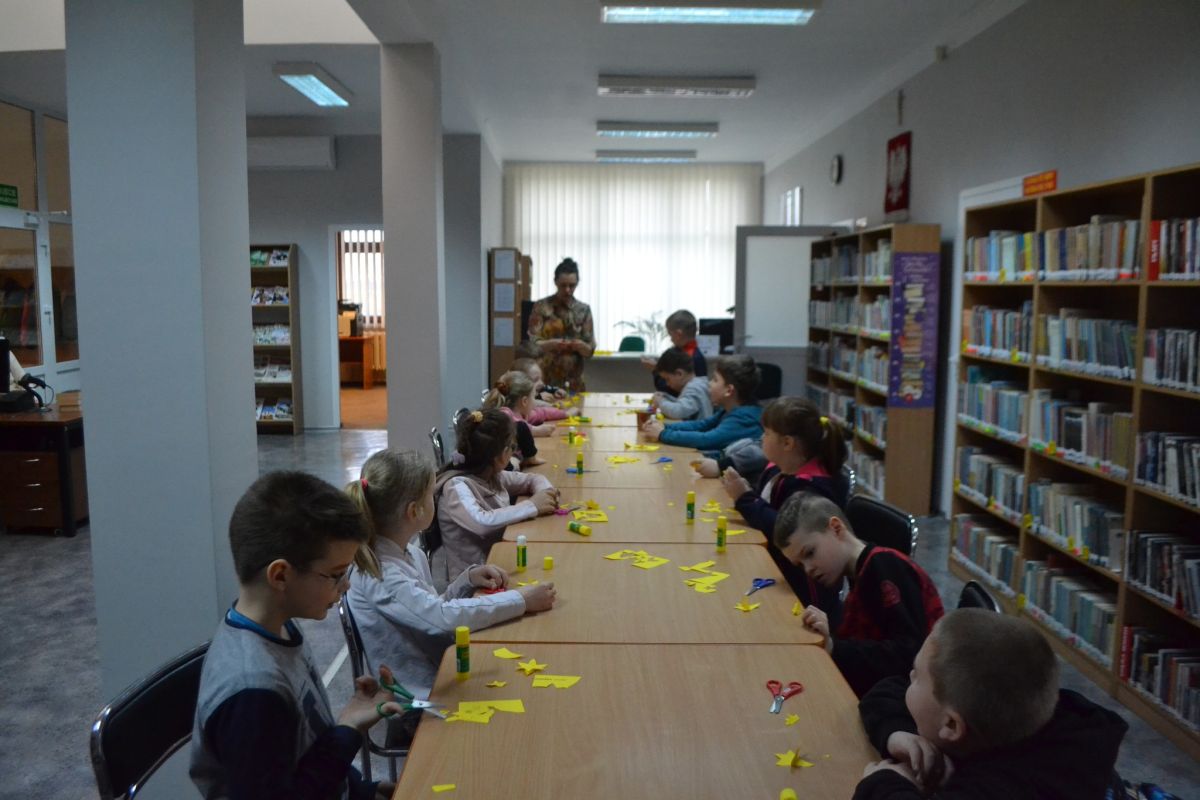 Lekcja biblioteczna dla uczniów i spotkanie z podopiecznymi Centrum Opiekuńczo-Mieszkalnego w Zarębach Kościelnych.