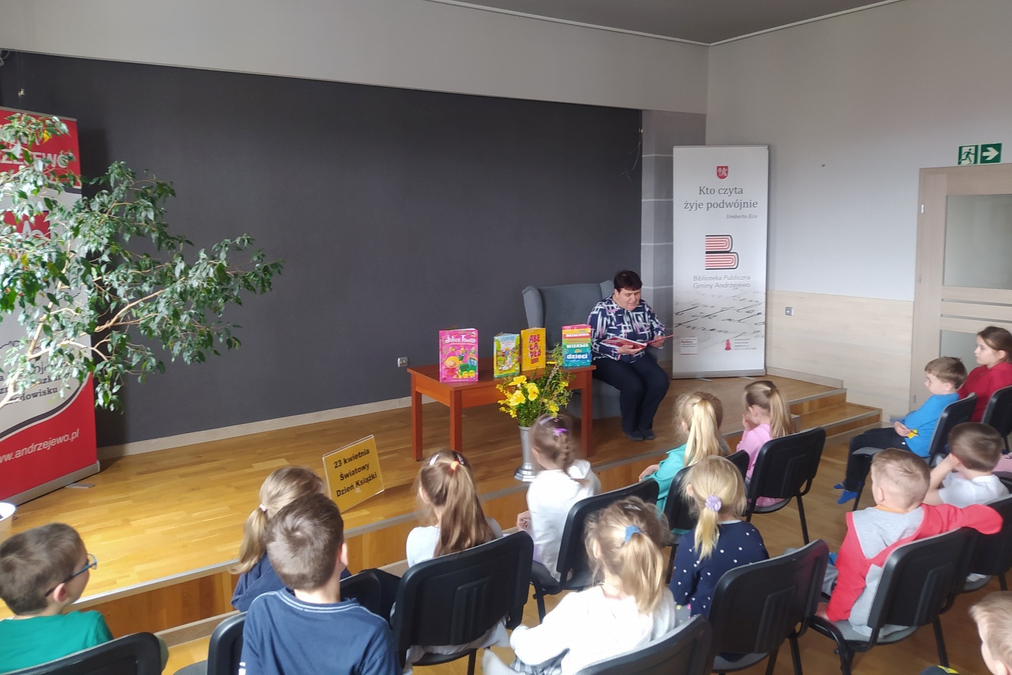 Dzieci z oddziału przedszkolnego w Andrzejewie odwiedziły lokalną bibliotekę.