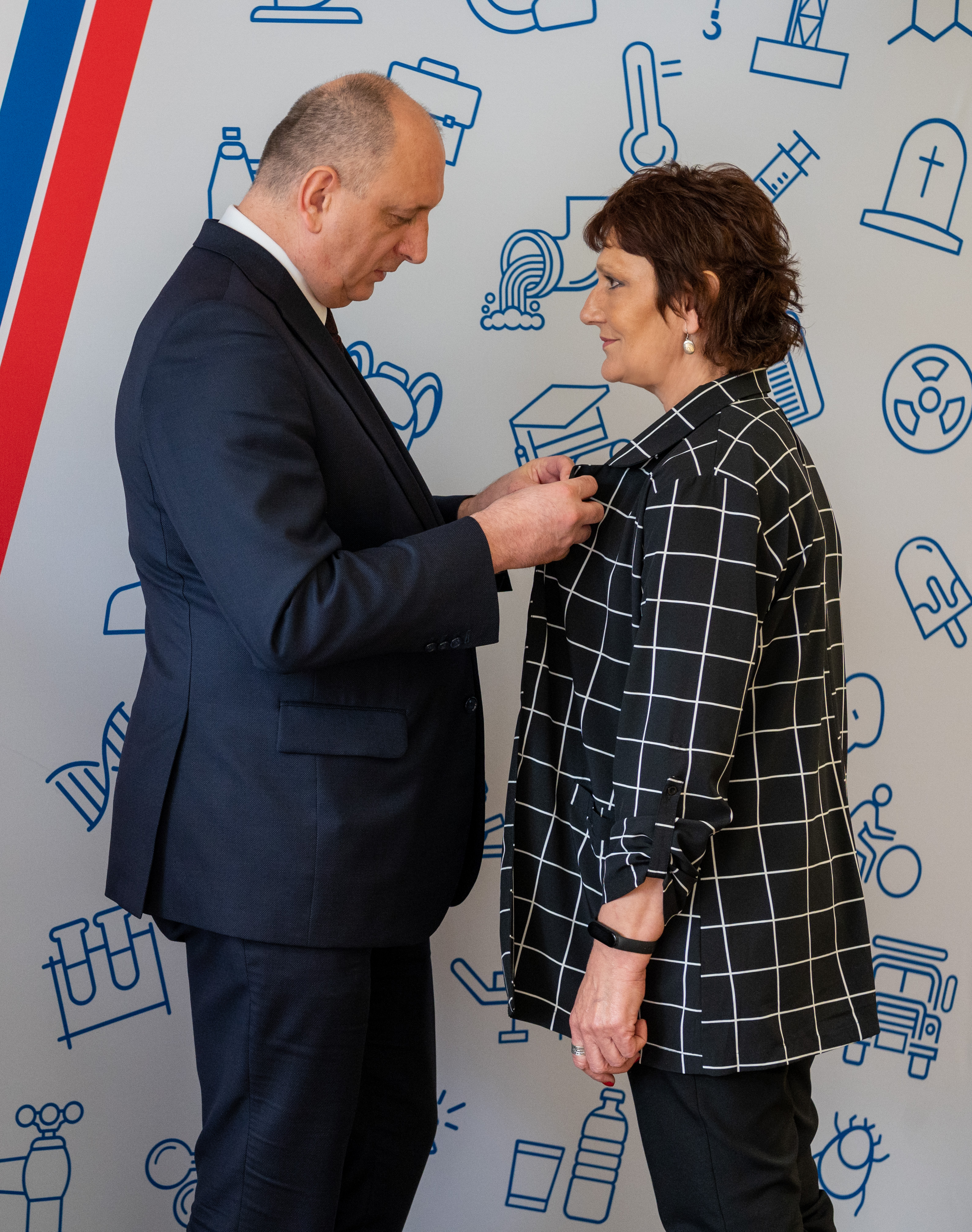 Uroczystość wręczenia odznak honorowych "Za zasługi dla ochrony zdrowia" pracownikom Państwowej Inspekcji Sanitarnej województwa mazowieckiego (18.05.2023) - Zdjęcie 9/13