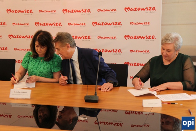 Przedstawiciele jednostek samorządowych z terenu powiatu ostrowskiego oraz gminy Rzekuń, podpisali umowy dot. dofinansowań.