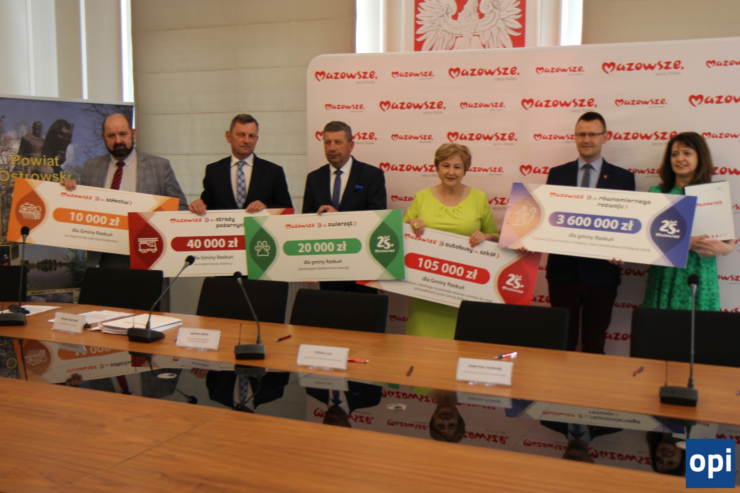 Przedstawiciele jednostek samorządowych z terenu powiatu ostrowskiego oraz gminy Rzekuń, podpisali umowy dot. dofinansowań.