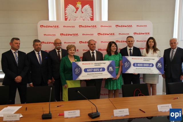 Przedstawiciele jednostek samorządowych z terenu powiatu ostrowskiego oraz gminy Rzekuń, podpisali umowy dot. dofinansowań.