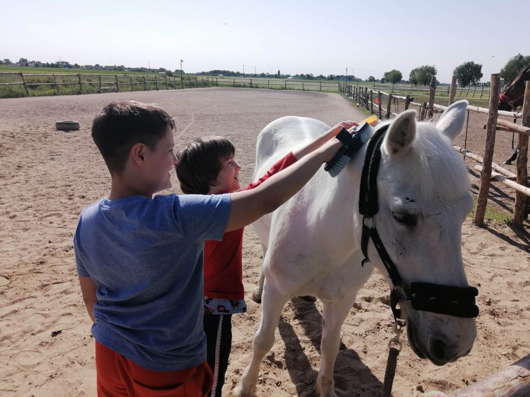Uczniowie czyścili konie, karmili je, a następnie jeździli na nich pod okiem trenerów.
