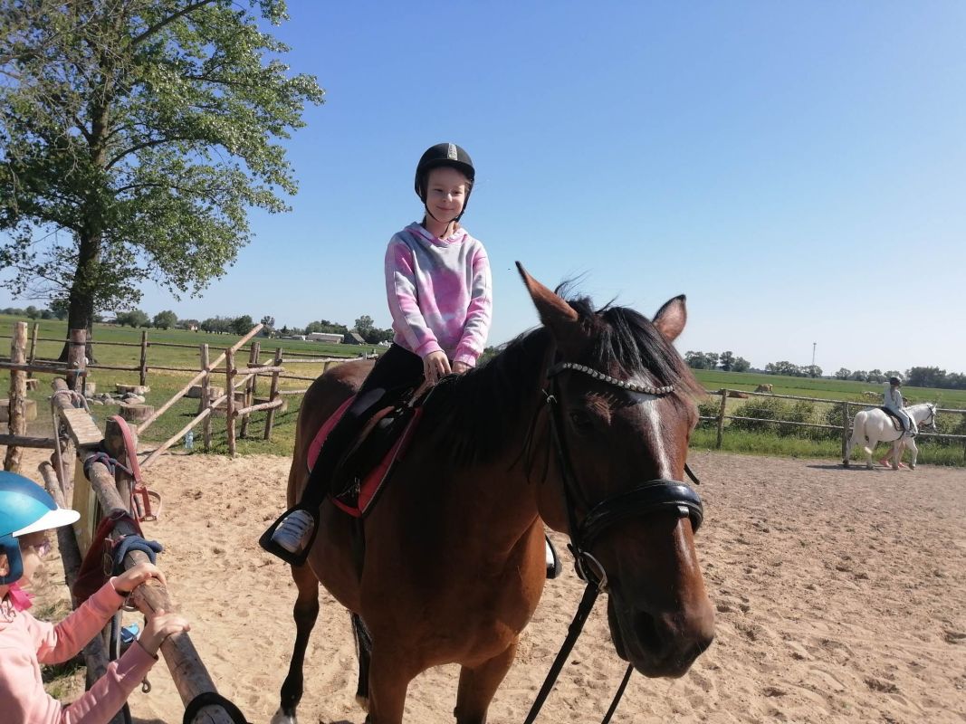 Uczniowie czyścili konie, karmili je, a następnie jeździli na nich pod okiem trenerów.