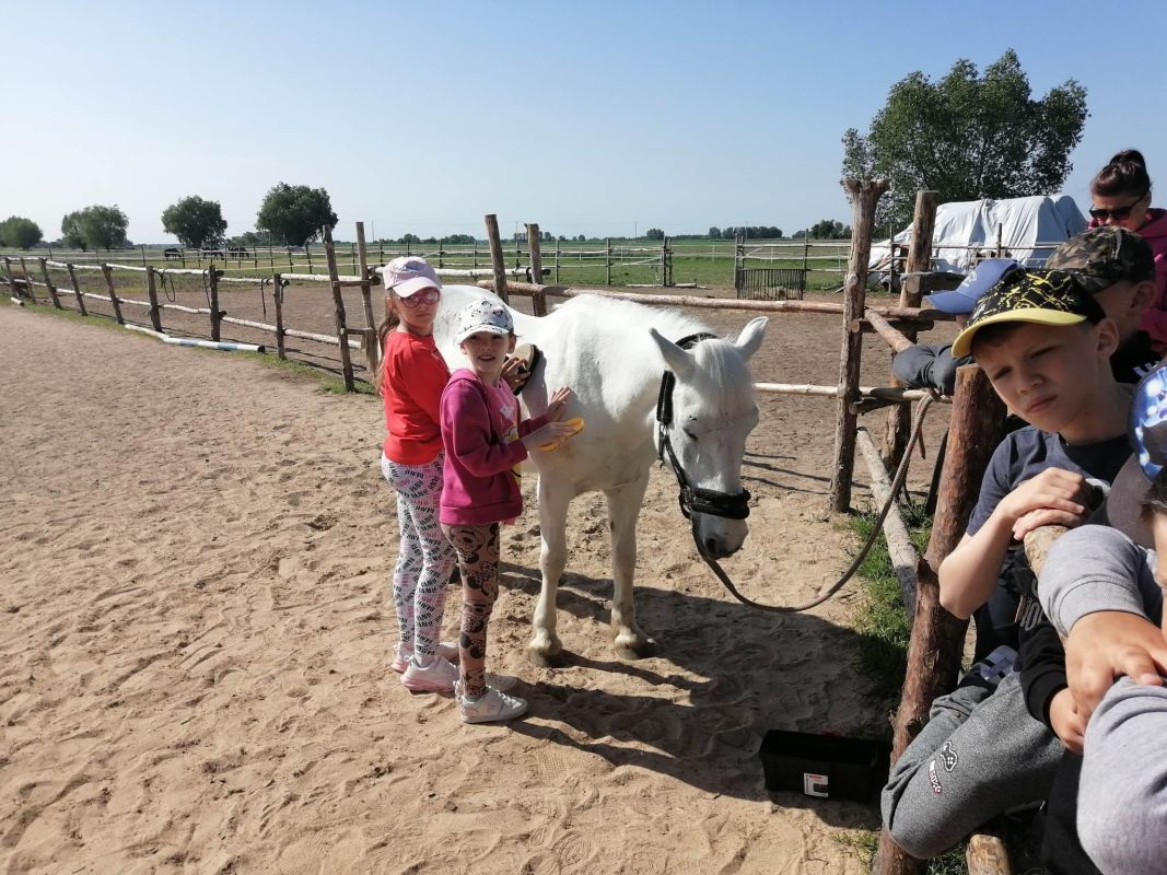 Uczniowie czyścili konie, karmili je, a następnie jeździli na nich pod okiem trenerów.