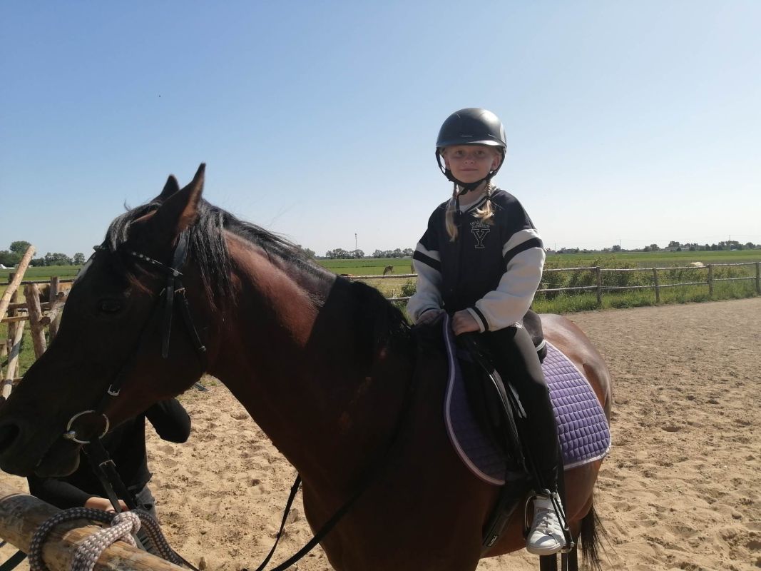 Uczniowie czyścili konie, karmili je, a następnie jeździli na nich pod okiem trenerów.