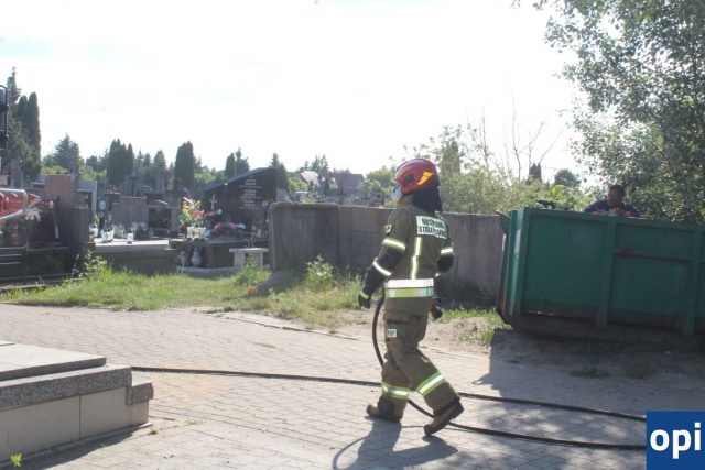 Palił się kontener na śmieci na cmentarzu parafialnym, przy ul. Lubiejewskiej.