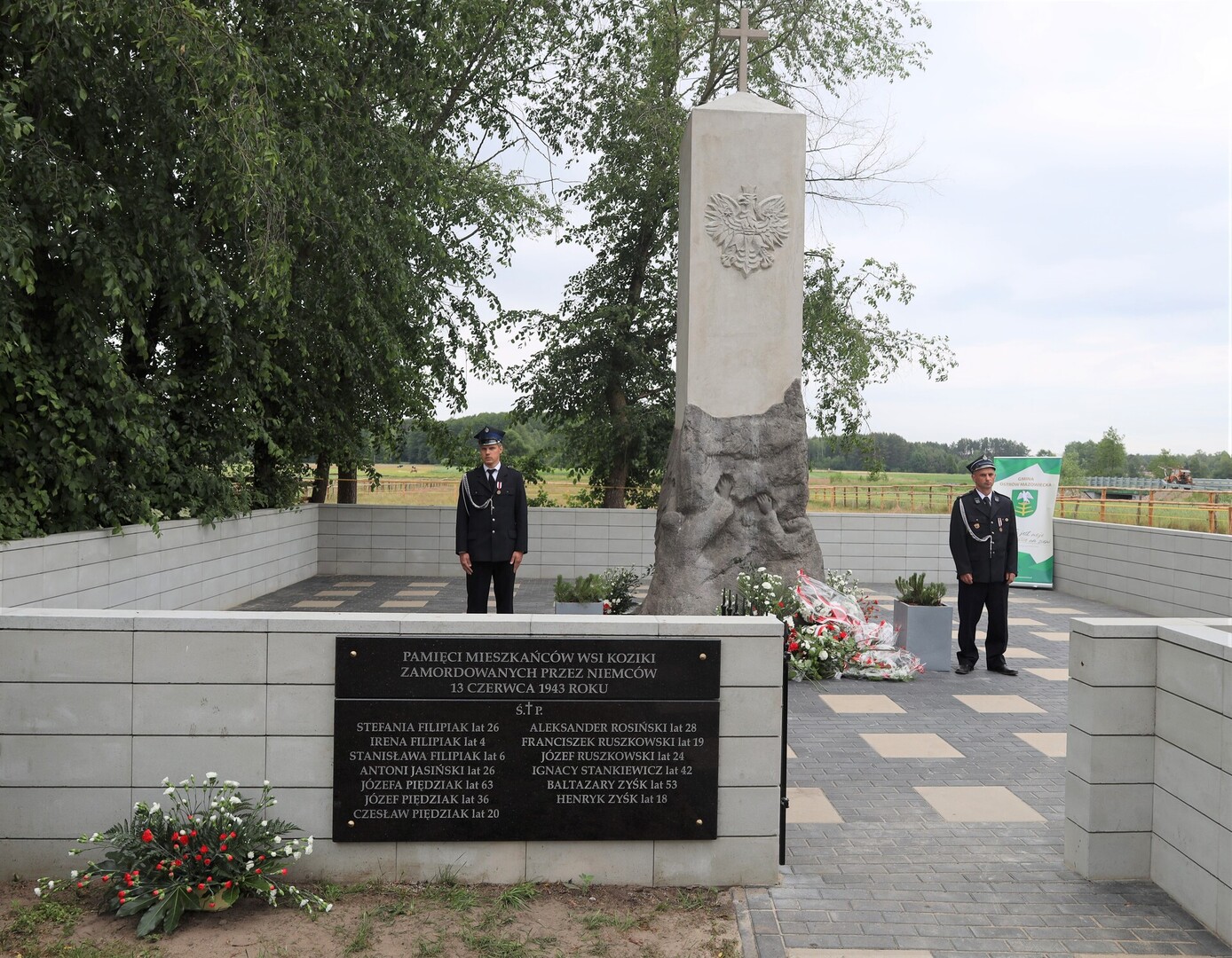 Uroczystość odsłonięcia pomnika ku pamięci mieszkańców pomordowanych przez Niemców 13 czerwca 1943, odbyła się w miejscowości Koziki.