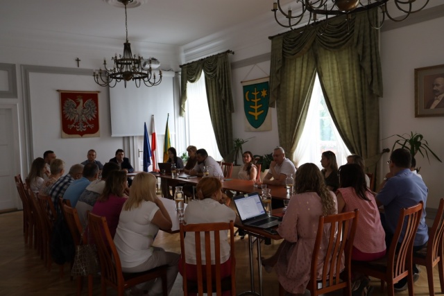Zebrani dyskutowali na temat zastosowanych materiałów do wykończenia sali gimnastycznej oraz elementów elewacyjnych budynku szkoły i przedszkola.