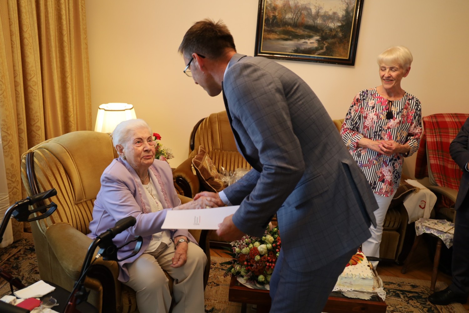 Delegacje z Urzędu Miasta i Mazowieckiego Urzędu Wojewódzkiego odwiedziły świeżo upieczoną stulatkę.