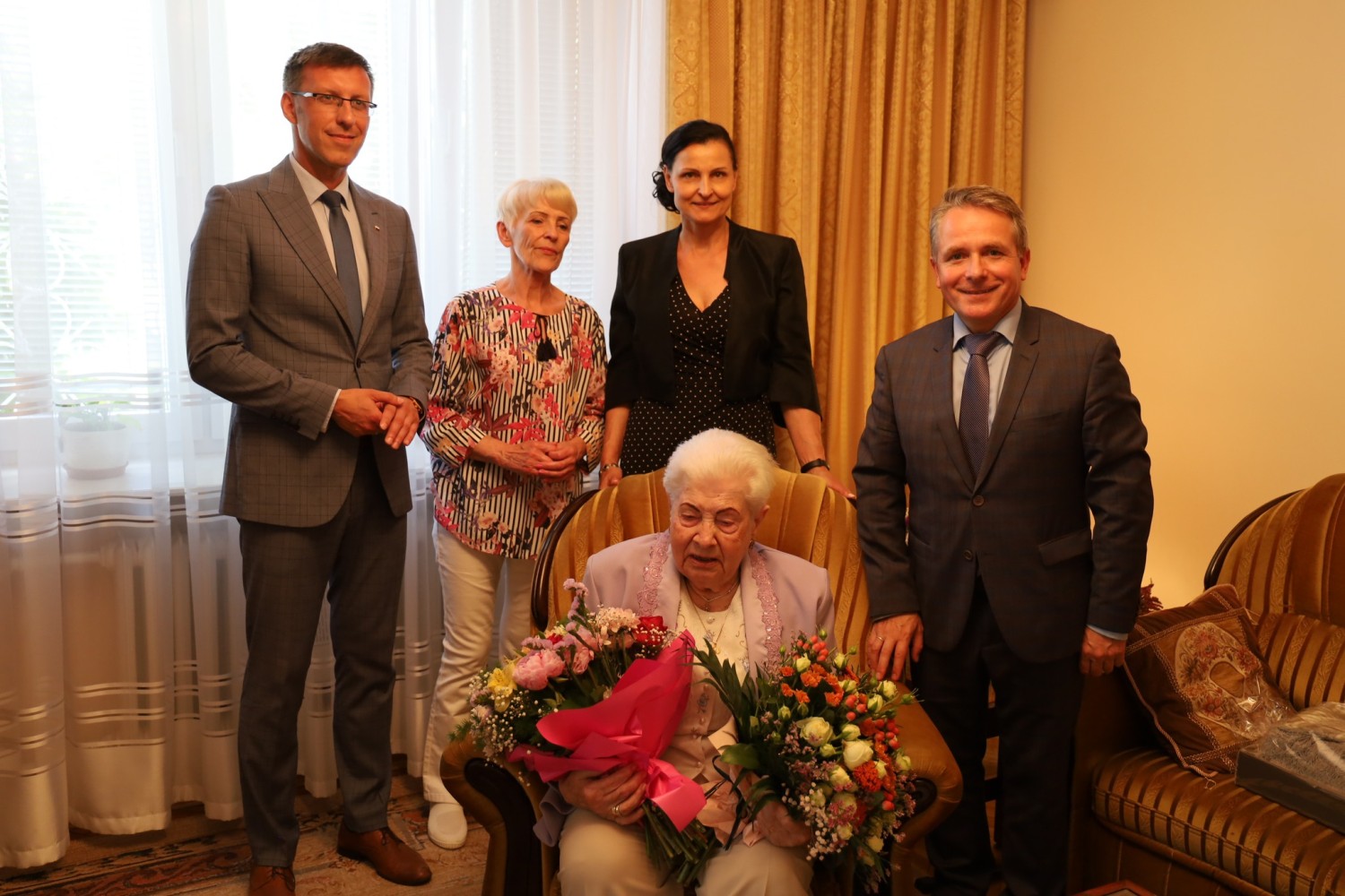 Delegacje z Urzędu Miasta i Mazowieckiego Urzędu Wojewódzkiego odwiedziły świeżo upieczoną stulatkę.