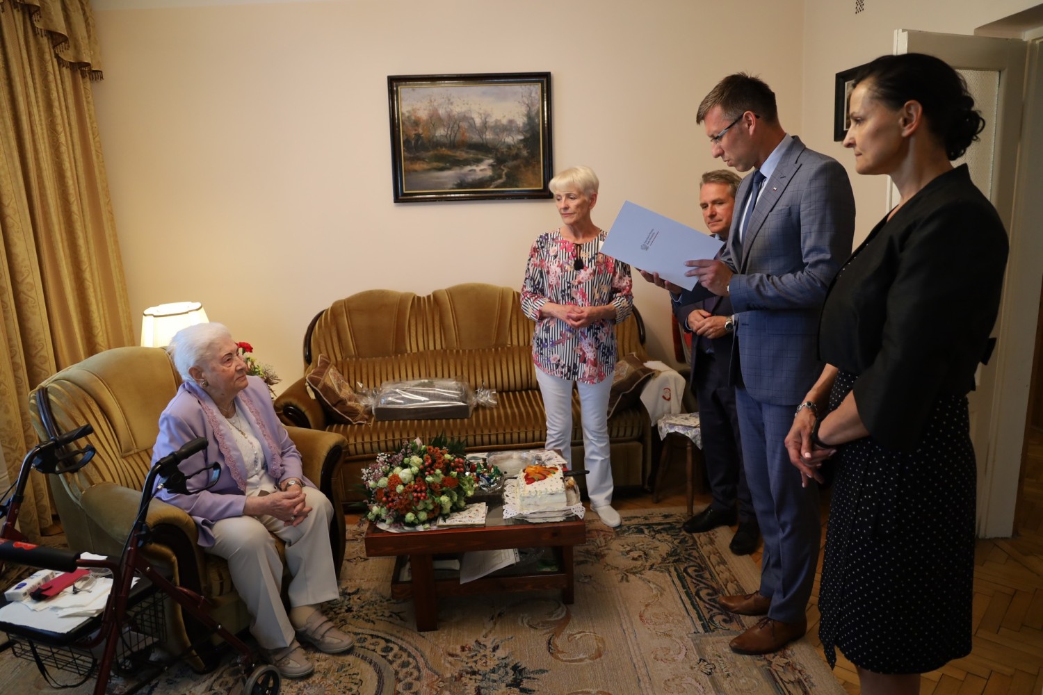 Delegacje z Urzędu Miasta i Mazowieckiego Urzędu Wojewódzkiego odwiedziły świeżo upieczoną stulatkę.