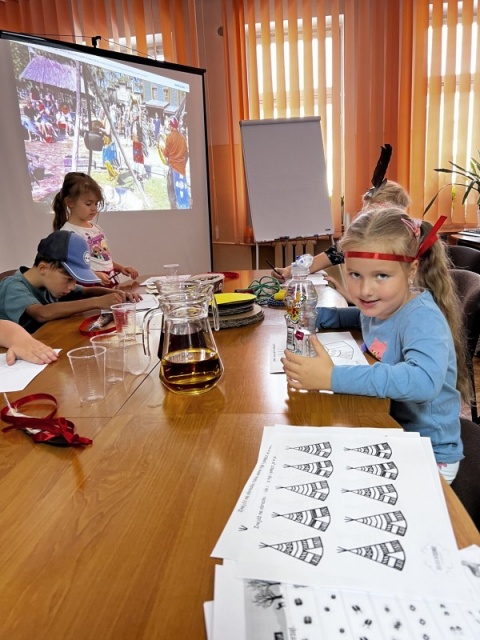 Dzieci zapoznały się z historią odkrycia Ameryki przez podróżnika Krzysztofa Kolumba oraz z kulturą plemion indiańskich.