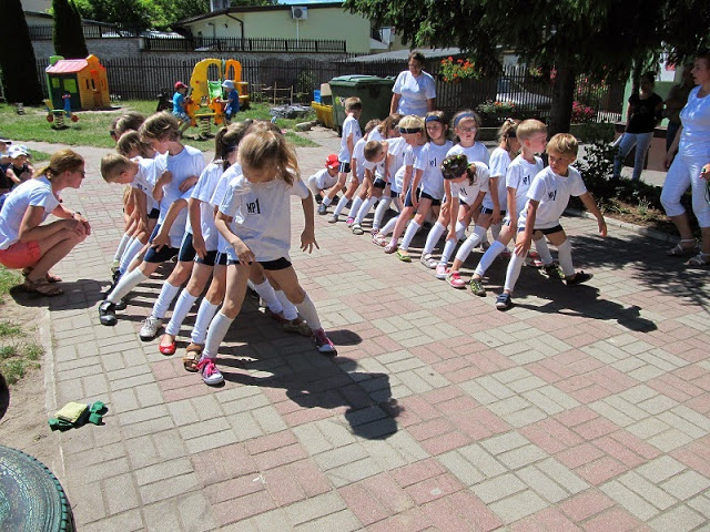 Wszyscy zawodnicy na placu zabaw, znajdującego się na terenie przedszkola, jeszcze raz wzięli udział we wszystkich konkurencjach.