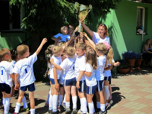 Wszyscy zawodnicy na placu zabaw, znajdującego się na terenie przedszkola, jeszcze raz wzięli udział we wszystkich konkurencjach.