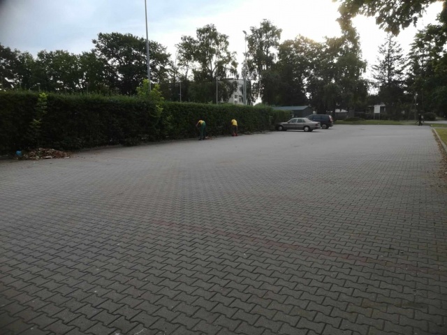 Sprzątanie parkingów obok szpitala.