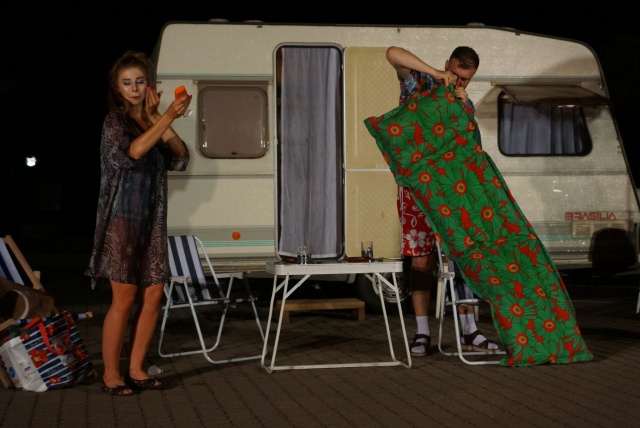 Plenerowy spektakl "Bałtyk Story" w wersji nocnej, gościł na nurskim rynku.