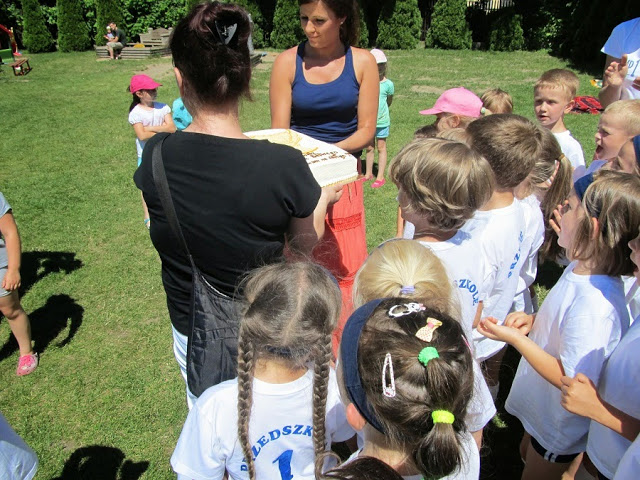 Wszyscy zawodnicy na placu zabaw, znajdującego się na terenie przedszkola, jeszcze raz wzięli udział we wszystkich konkurencjach.