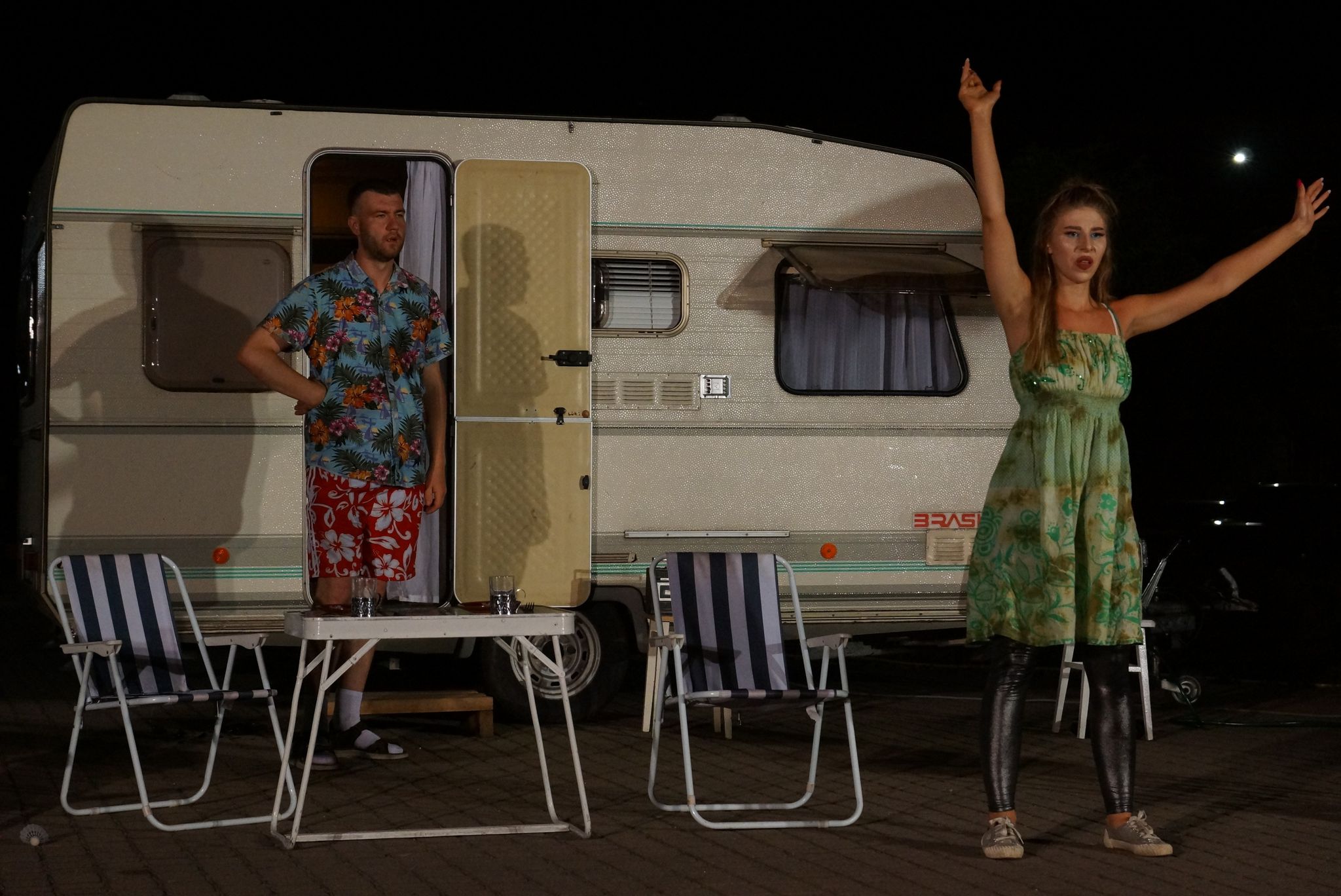 Plenerowy spektakl "Bałtyk Story" w wersji nocnej, gościł na nurskim rynku.