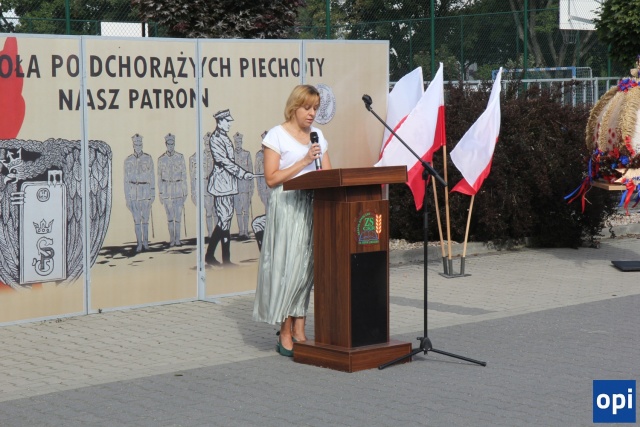 Uroczysta inauguracja roku szkolnego 2023/2024 odbyła się przed głównym wejściem do szkoły, przy pięknej pogodzie.