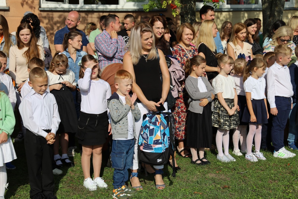 Wszyscy zgromadzeni uczniowie po wakacjach przyszli zwarci i gotowi do nauki.