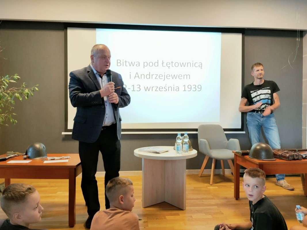 Damian Jasko i Marek Krajewski przybliżyli dzieciom wiedzę na temat działań wojennych na terenach gminy Andrzejewo z początków września 1939 roku.