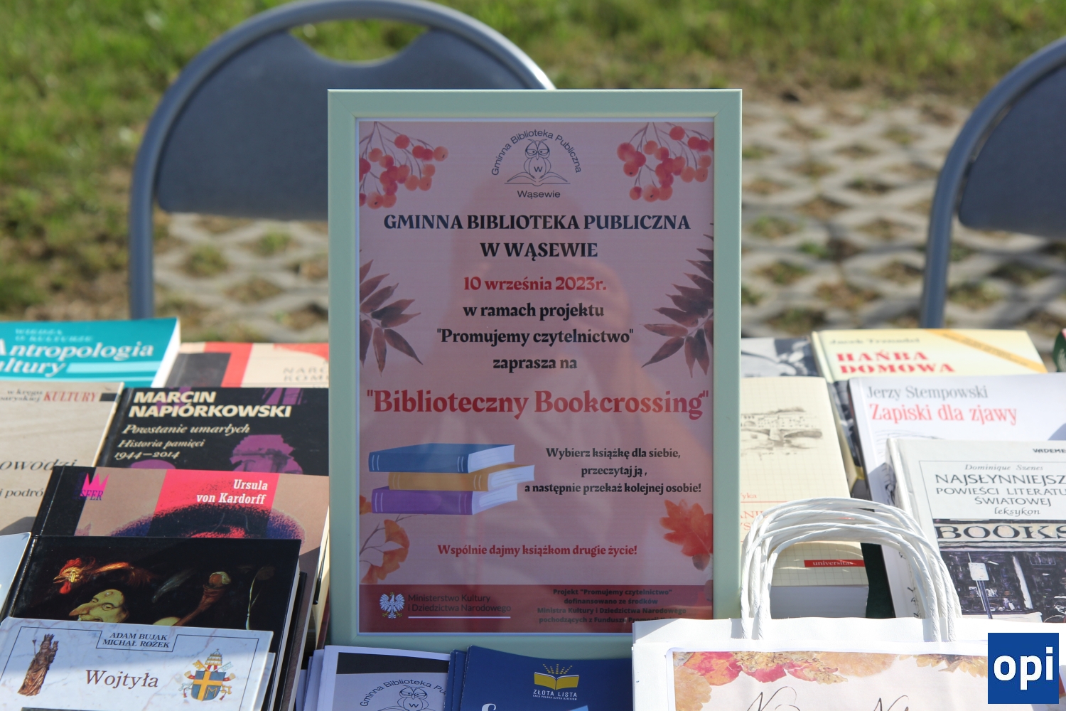 Wydarzenie dotyczące 12. edycji Narodowego Czytania odbyło się na placu Gminnej Biblioteki Publicznej, wraz z aktorami Adrianną Biedrzyńską, Melanią Grzesiewicz oraz Dariuszem Wieteską.